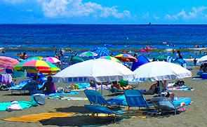 東京湾に面しているので波が静かで遠浅。臨海学校の子供達や家族連れで賑わう。駅からも近く便利。夏目漱石の日記に海水浴を楽しんだ様子が記されており、「房州海水浴発祥の地」といわれている。